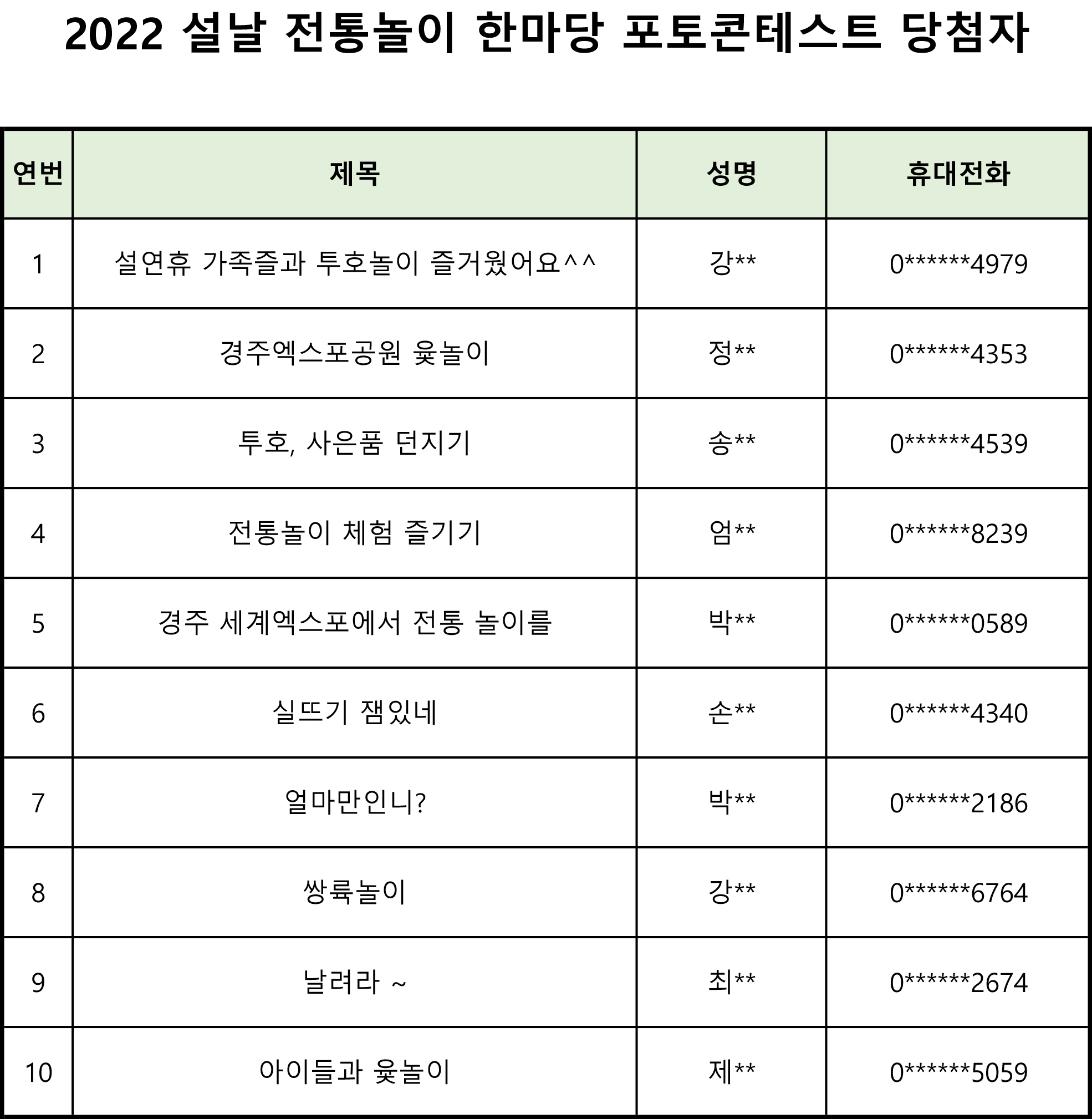 경주엑스포대공원 "2022 설날 전통놀이 한마당 포토콘테스트" 이벤트에 참여해주셔서 감사드립니다.